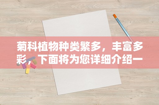 菊科是一个庞大的植物家族,包含了数千种植物,广泛分布于全球各地,这些植物形态各异,有的可以作为观赏植物,有的则可以作为药用植物或食用植物。