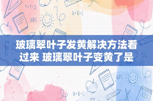 玻璃绿叶发黄的原因有很多,如浇水不当、环境影响、病虫害发生等。至于如何解决,下面我们会详细介绍,一起来看看吧。