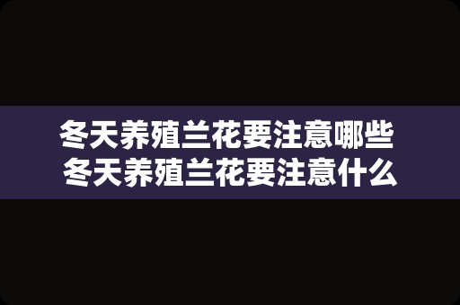 各种花卉知识是花友最关心的话题,今天我们来介绍一个大家都比较关心的话题:冬天养殖兰花要注意哪些 冬天养殖兰花要注意什么,下面我们将为大家来详细介绍下,原创内容如下: