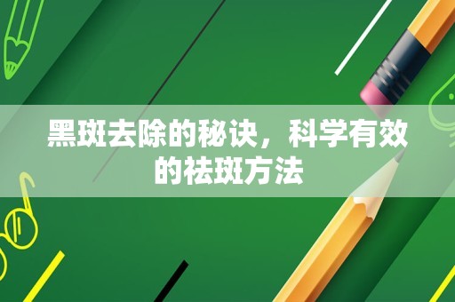 黑斑是许多人面临的美容问题,它不仅影响肌肤的美观,还可能给人带来心理压力,为了有效去除黑斑,我们可以采取以下几种方法:
