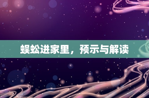 蜈蚣进家并没有明确的预示或象征意义,人们可以根据自己的信仰和文化背景进行解读,但更重要的是关注居住环境的改善和卫生状况的维护。