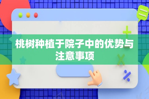 在院子里种植桃树,需要注意以下几点,要选择适合当地气候和土壤条件的品种,以确保桃树能够健康生长,要合理施肥和浇水,保持土壤湿润但不过湿,避免过度施肥导致树势过旺而影响果实品质,还要注意防治病虫害,定期检查桃树的生长情况,及时发现并处理病虫害问题。